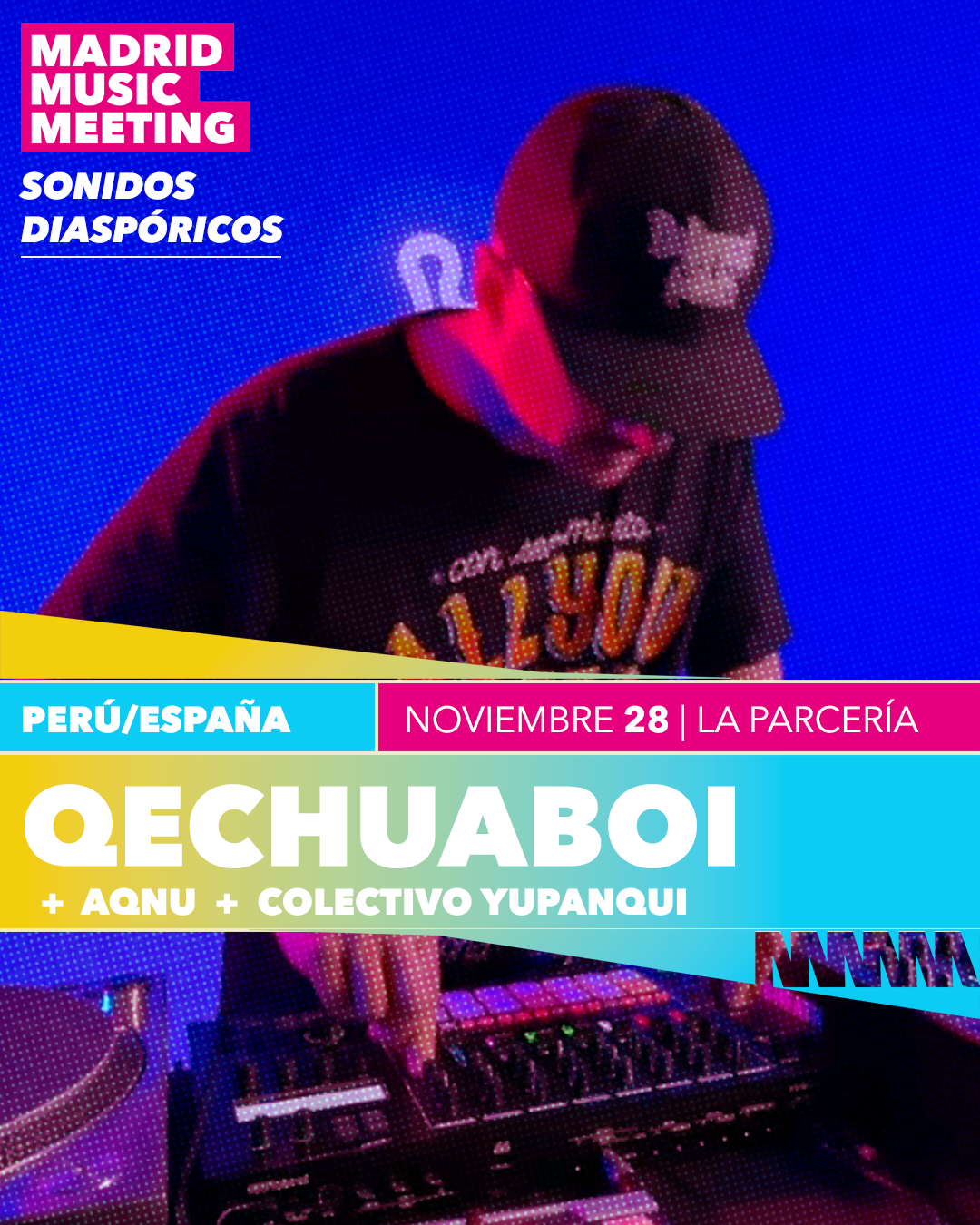 Del 28 de noviembre al 14 de diciembre, en La Parcería y Sala Villanos, ven a experimentar la colisión de géneros: quechua con trap, y cumbia con afrofuturismo.